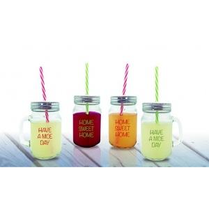 - Сет от 4 бр. буркани с капачки и сламки