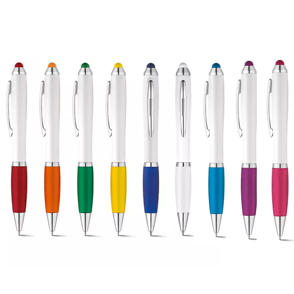 - Пластмасова химикалка с цветен грип и гумичка за тъчскрийн и хромирани елементи