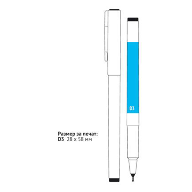 - Тънкописец с капачка, матирана плътна повърхност и метален клип