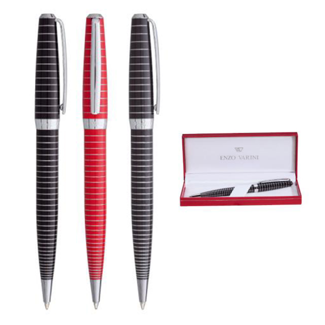 Химикалка Faggio черен лак с хоризонтални линии, хромирани елементи