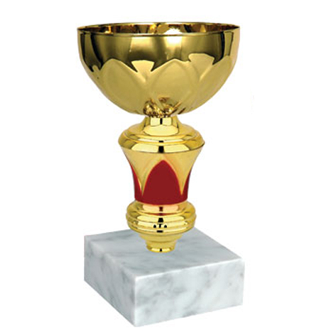 Детска спортна купа, златно покритие с червен мотив - височина 18 см