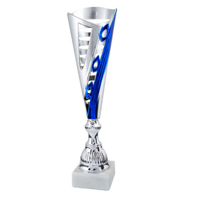 Стандартна спортна купа, сребърна със сини елементи - височина 36.5 см