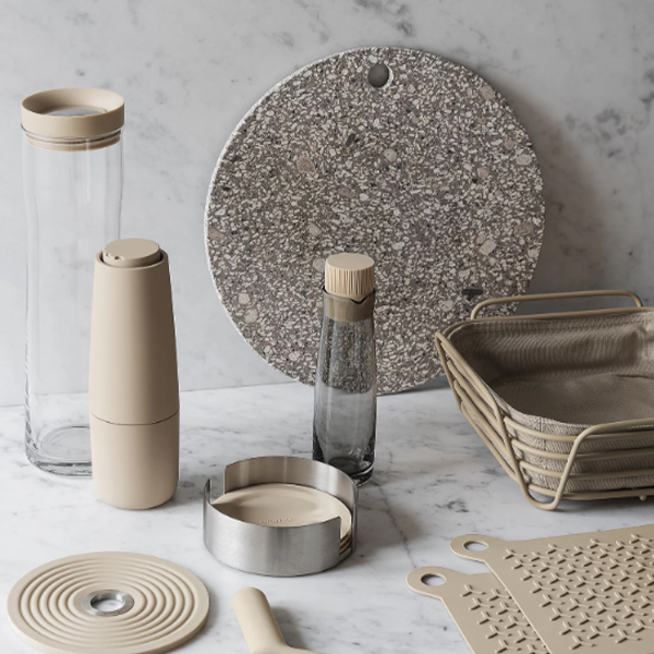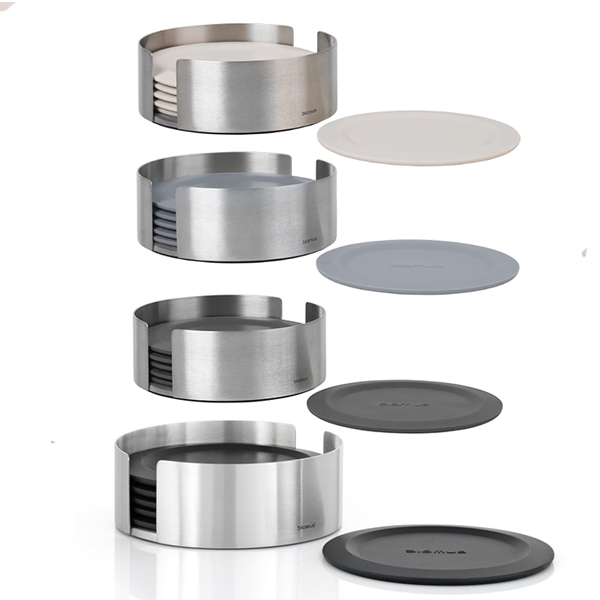 Силиконовите подложки LARETO в цвят Moonbeam предпазват вашата маса или плот от разливане и надраскване. А когато не се използват, шестте удобни подложки могат да се съхраняват в стилния държач от неръждаема стомана.