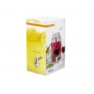 Чашата Ви никога не ще остане празна с този огромен диспенсър за напитки! Вдъхновен от традициите на домашно приготвените напитки, дизайнът на този диспенсър пресъздава огромен буркан. Изработен от дебело, висококачествено стъкло, с капак, който се затваря плътно с клипс. Широко гърло, за лесно добавяне на лед, плодове, листа мента и всички други добавки към питието Ви. Наливането става бързо и лесно посредством симпатично кранче, разположено в долната част на диспенсъра.