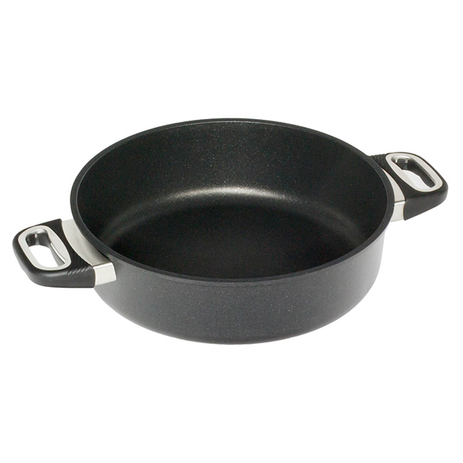 За всички, които все още се връщат с усмивка в тези времена, AMT създаде плитката тенджера с термоустойчиви дръжки – готвиш и пържиш на котлона, после мяташ направо във фурната! В един единствен съд храната става несравнимо вкусна, здравословна и едновременно с това диетична.