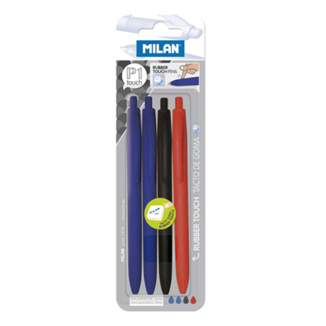 Химикалка автоматична, P1 Touch 1.0 мм, 2 броя + черна и червена, в блистер