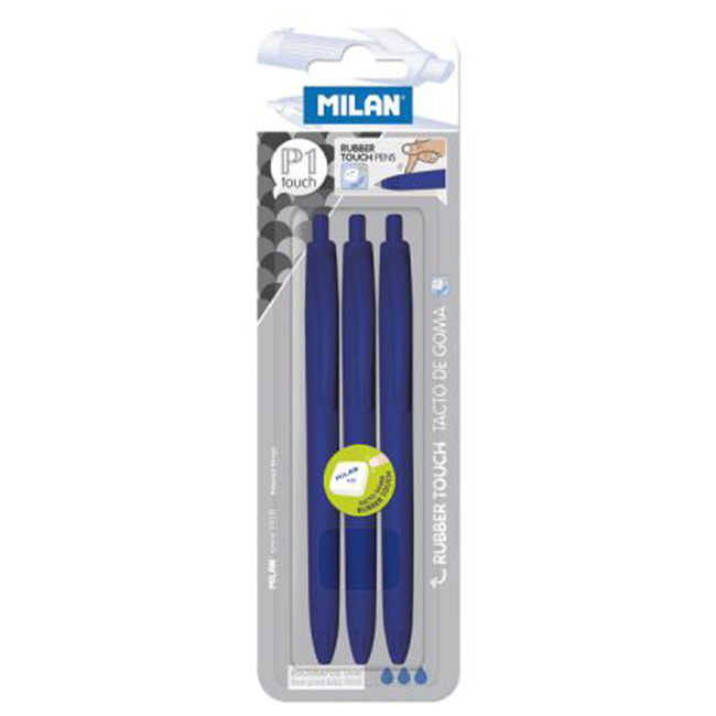 Химикалка автоматична, P1 Touch 1.0 мм, синя, 3 броя, в блистер