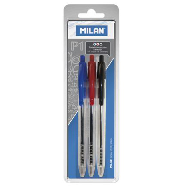 Химикалка автоматична P1, 1.0 мм, 3 броя в блистер