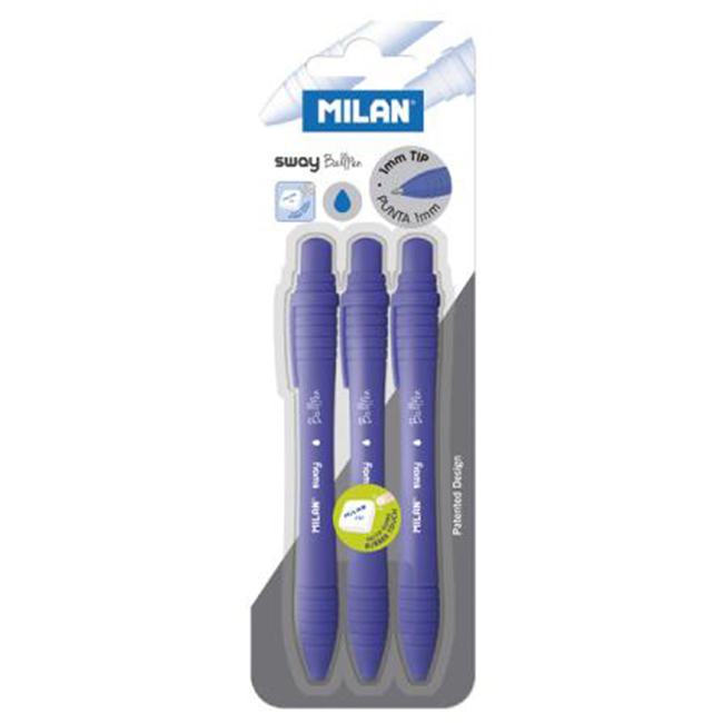 Химикалка автоматична, Sway 1.0 мм, синя, 3 броя в блистер