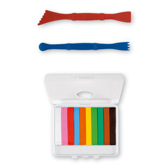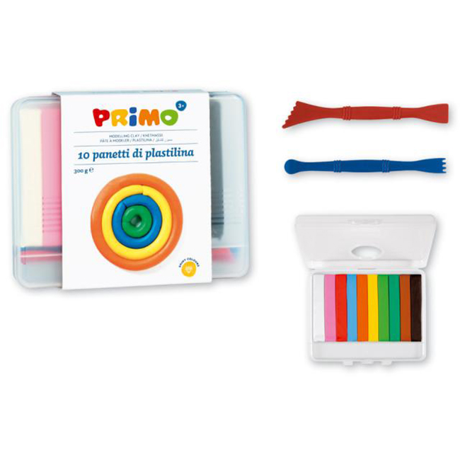 Пластилин 10 цвята, 300 г, в PPL кутия, 2 двустранни ножчета