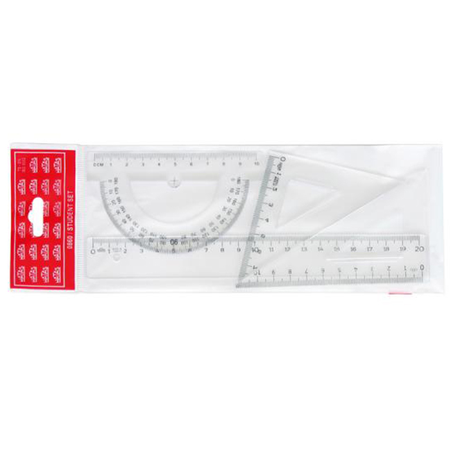 Комплект за чертане - линия 20 см, триъгълник 14 см, транспортир