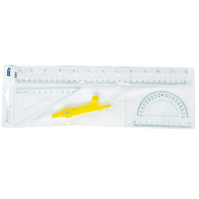 Комплект за чертане - линия 30 см, триъгълник 12 см 60°, транспортир, пергел