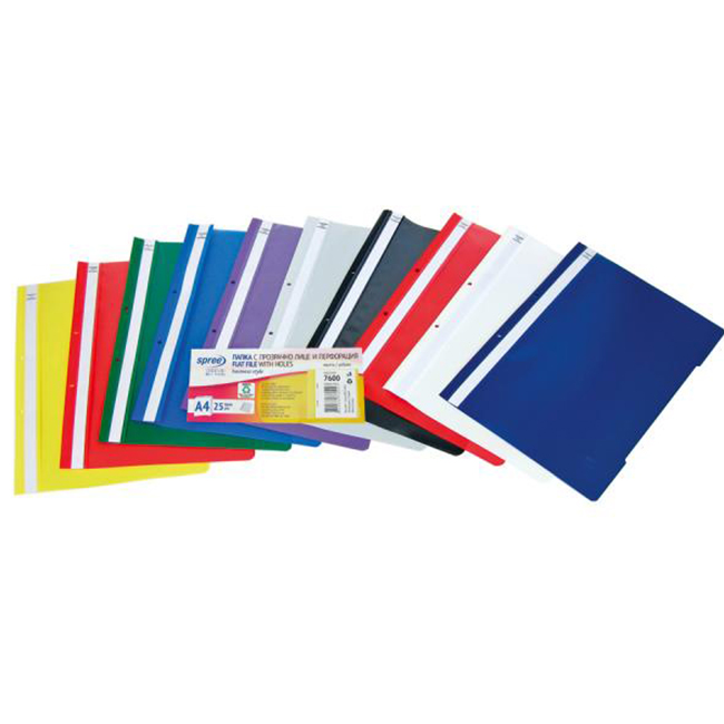Папка с прозрачно лице и перфорация, формат А4, PP, богата палитра от цветове