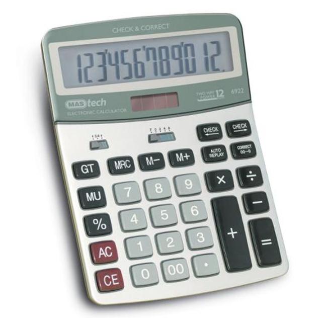 Калкулатор, 12 разряден дисплей, размер 190х145 мм, check/correct, метален панел