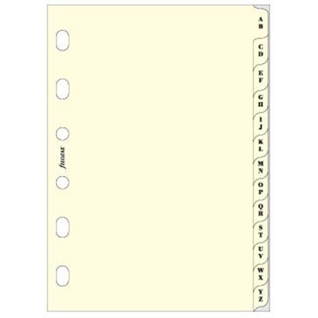 - Азбучник Filofax A-Z Index Multi Coloured, с 13 кремави нелинирани листа, които ще ви помогнат да организирате контактите си по азбучен ред си.