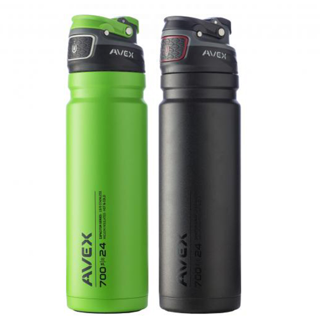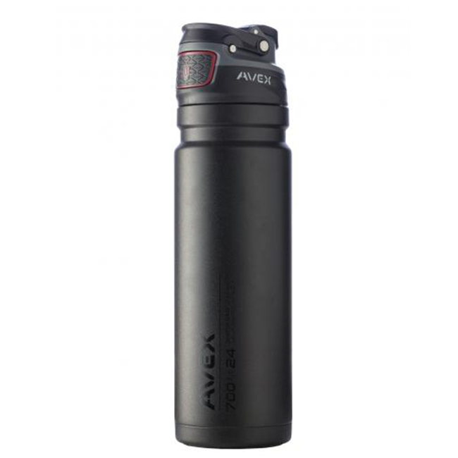 AVEX FreeFlow е термочаша за вода, проектирана за удобството и нуждата на хора, които са в движение постоянно. Тази термочаша разполага с Autoseal® технология - просто натиснете бутона, за да пиете и го пуснете за да затворите термочашата херметически. Благодарение на тази технология никога не можете да разлеете съдържанието на термочашата си. Разполага с дръжка-карабинер за лесно носене и прикрепяне към раница или колан. Има защитно капаче на чучура, което го предпазва от прах и мръсотия. Запазва топли течностите до 10 часа, а студени до 29 часа.