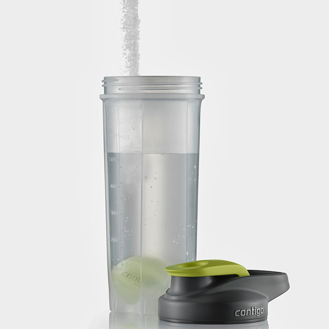Contigo стартира серията Shake & Go специално за любителите на спорта. Този шейкър за протеинови напитки е проектиран с обли ъгли на дъното и топче за по-качествено разбиване на напитките и предотвратяване образуването на бучки. Технологията на Contigo може да Ви гарантира хомогенно разбити напитки и шейкове. Дизайнът съчетава естетика с удобни функции. На повърхността на шейкъра ще има мерителна скала за по-прецизно дозиране на шейковете Ви. Докато разбивате напитката си не се притеснявайте от пръски. Капакът приляга плътно и шейкърът се затваря херметически. Бутилката и капака могат спокойно да се мият в съдомиялна машина.