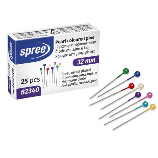 Карфици с цветна глава, 32 мм, 25 броя в кутия