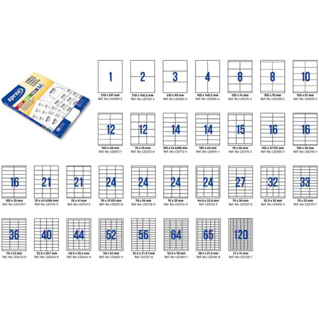 Етикети лепящи 15 броя, размер 70.0x56.0 мм, 100 листа, формат A4, кант 2