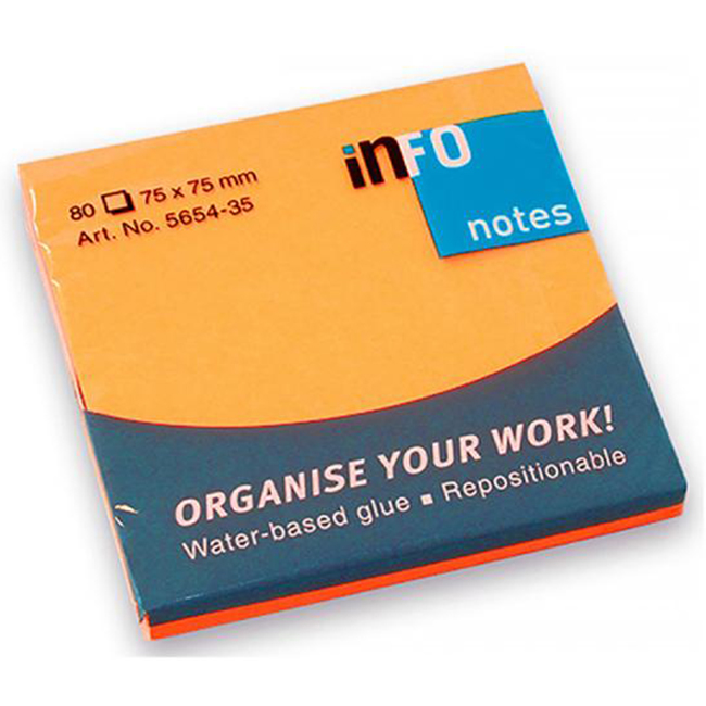 Листчета лепящи оранж неон, размер 75х75 мм, 80 листа