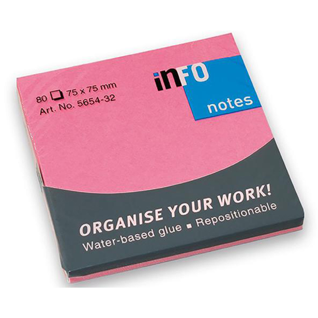Листчета лепящи неон, розови с размер 75х75 мм, 80 листа
