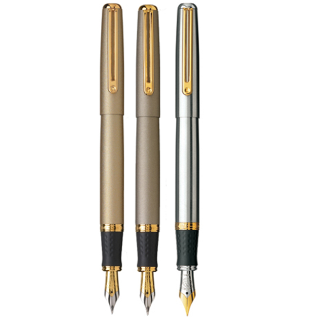 - Масивно тяло от неръждаема стомана, с високо-качествено лаково покритие, позлатени елементи и перо с 23,6 kts. проба , в луксозна кадифена или сребърна кутия .
