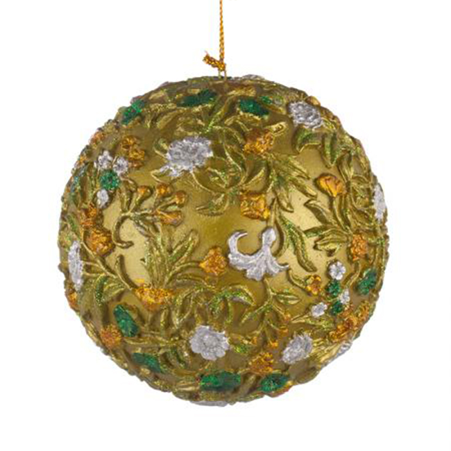 Играчка за елха - топче с флорални мотиви, златен цвят