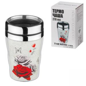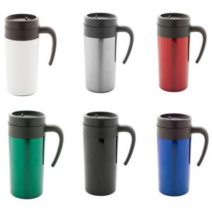 • Подгряваща термочаша за автомобил с капак и дръжка.