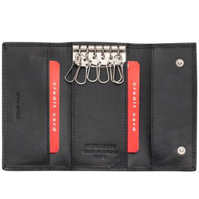 • Калъф за ключове от естествена кожа с гладка повърхност, 6 броя метални халки за ключове.
