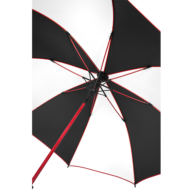 • Aвтоматичен голф чадър със спици от червено фибростъкло, 8 сектора и мека ергономична EVA дръжка.