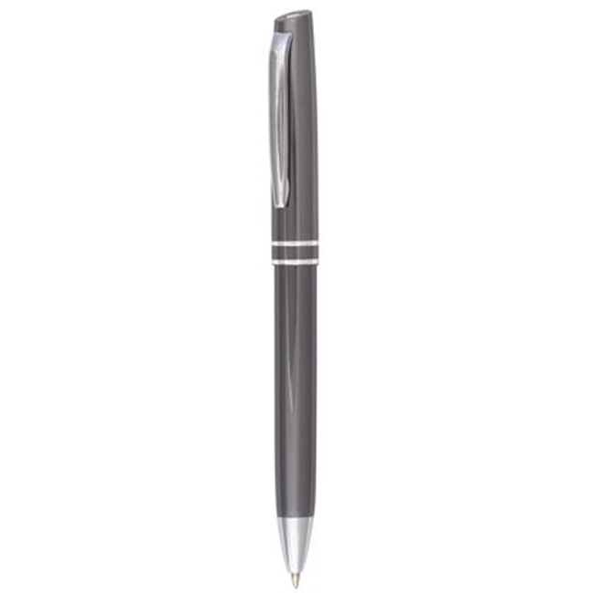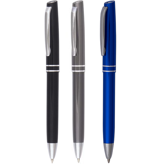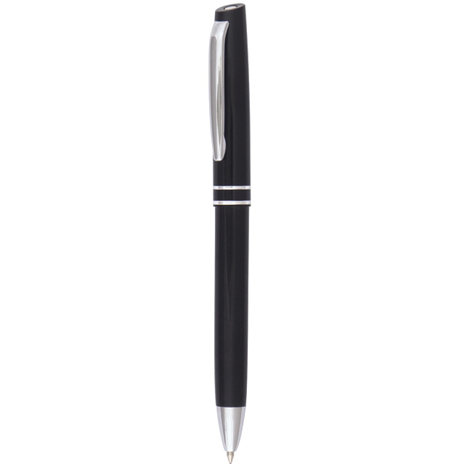 • Метална рекламна химикалка с щракащ механизъм. Черна с хромирани елементи.