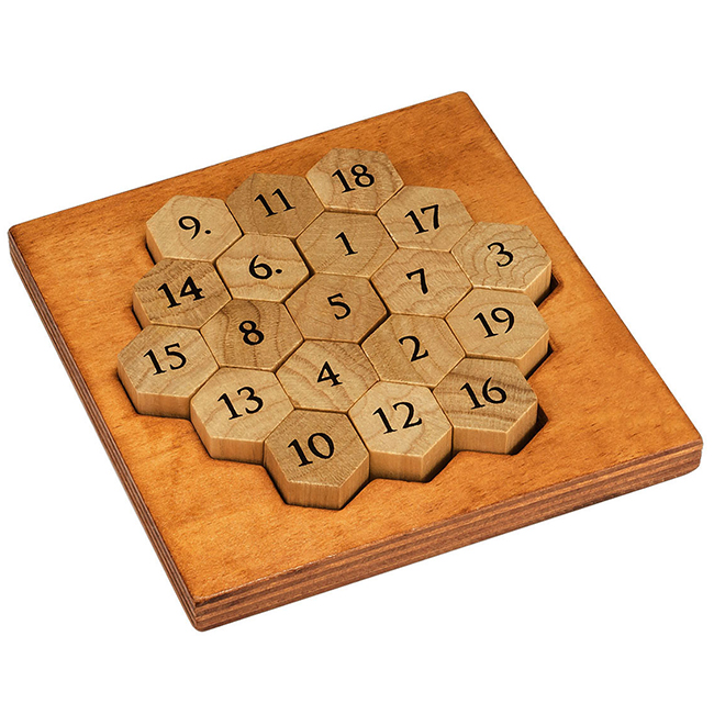 - Има 15 реда, като всеки един се състои от 3, 4 или 5 плочки с цифра. Плочките са надписани с цифри от 1 до 19.