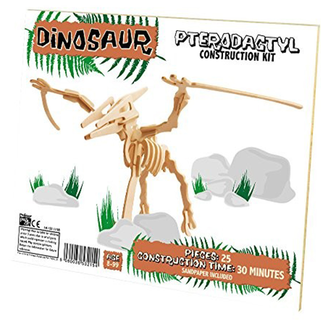 Този продукт съдържа всичко необходимо за да създадете птеродактил динозавър - една дървена дъска с различни по форма и размер парчета,упътване за сглобяване и шкурка за фина обработка на частиците.