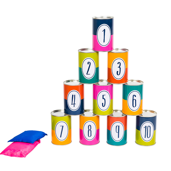 Подредете тенекиените кутийки, като започнете с ред от четири, отгоре три, две и една на върха, така че да оформите триъгълник. Отбележете мястото, откъдето всеки играч ще прави своя удар. Може да повишите трудността като отдалечите мястото за хвърляне. След това всеки играч има право на удар, за да види колко кутийки може да събори. След всеки удар, пребройте точките на играча и след това възстановете кулата за следващия играч.