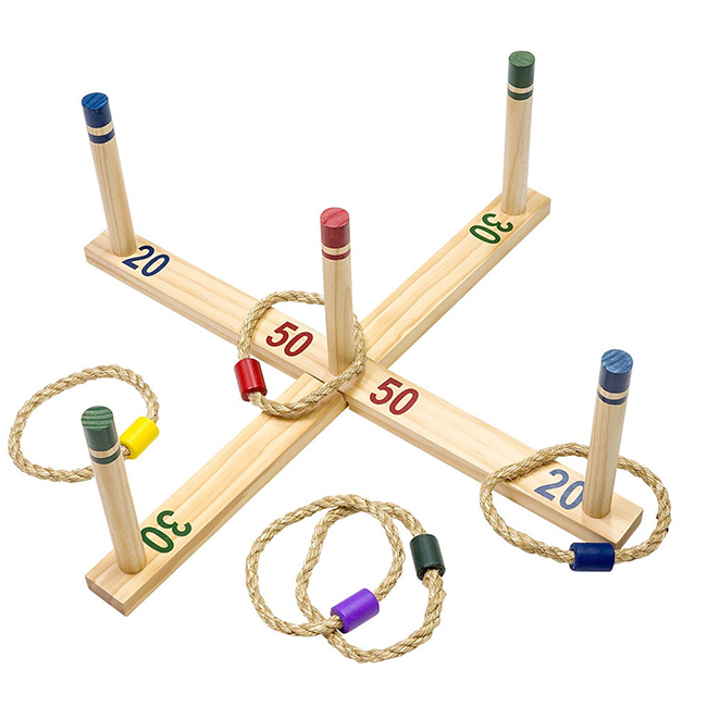 Всеки играч хвърля всички пет ринга към прътовете за точкуване, като застава зад определената за това линия.