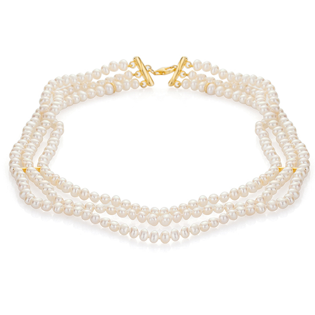 Бяло перлено колие от три реда