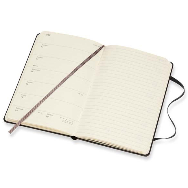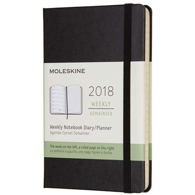 Черен 12 месечен тефтер - органайзер / седмичник Moleskine Black Pocket за 2018 г. с твърди корици, в джобен формат.