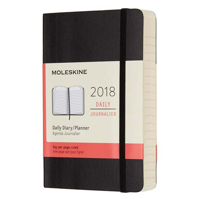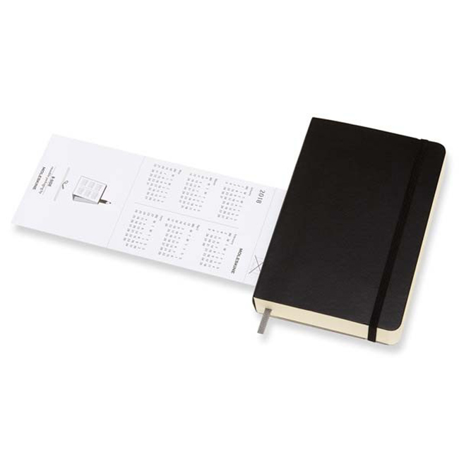 Черен 12 месечен органайзер - дневник Moleskine Black Pocket за 2018 година с меки корици в удобен джобен формат.
