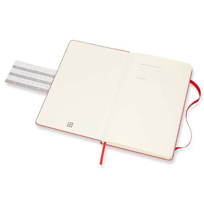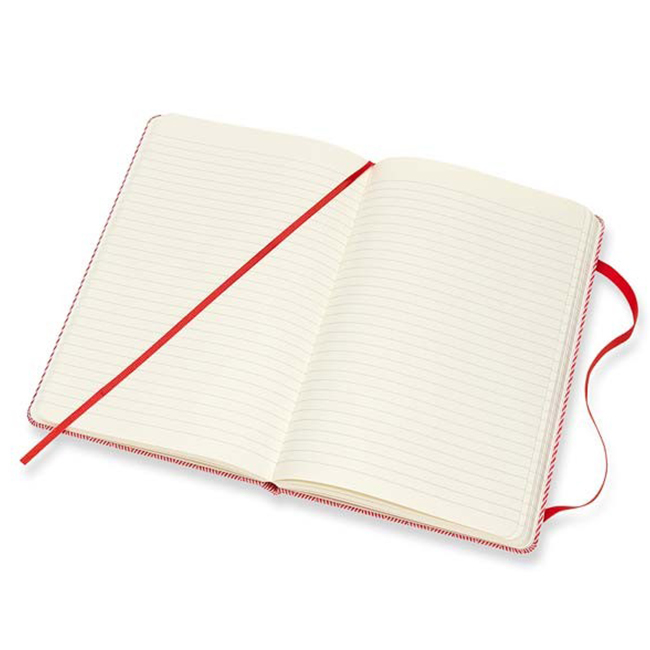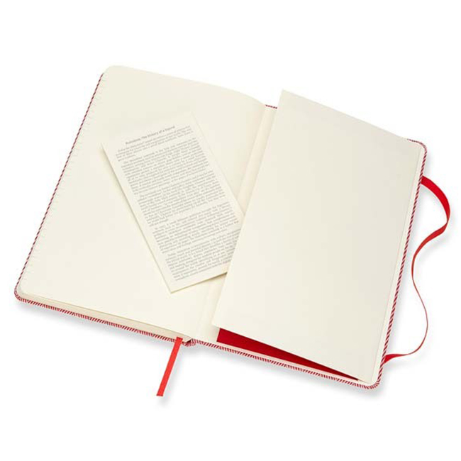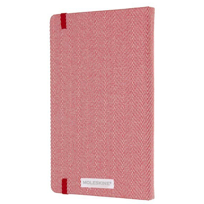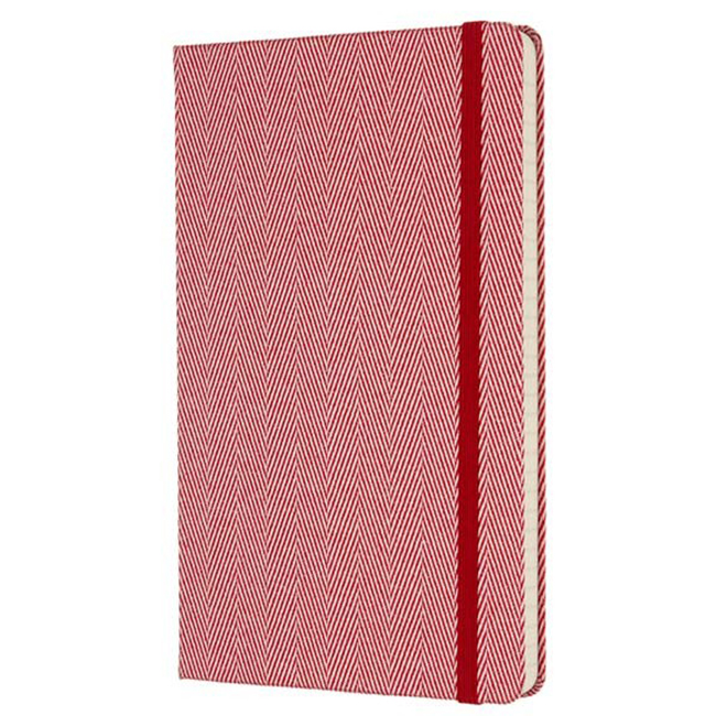 Червен текстилен тефтер Moleskine Blend Limited Collection - част от лимитирана серия, в която уникална естетична комбинация са съчетани красиви цветове с текстил - жакард. Жакардовите платове са изтъкани с преплитащи се цветни нишки, образуващи повтарящи се орнаменти. В конкретният случай / модел това са червени и бели ниши в десен тип рибена кост.