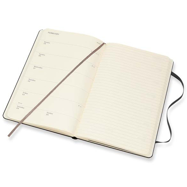 Голям черен седмичен тефтер - органайзер Moleskine Black Large за 2018 г. с меки корициРазгледай 5220лв2669€ -