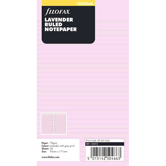 Пълнител за органайзер Filofax Personal с 30 бледо лавандулови линирани листа - широки редове