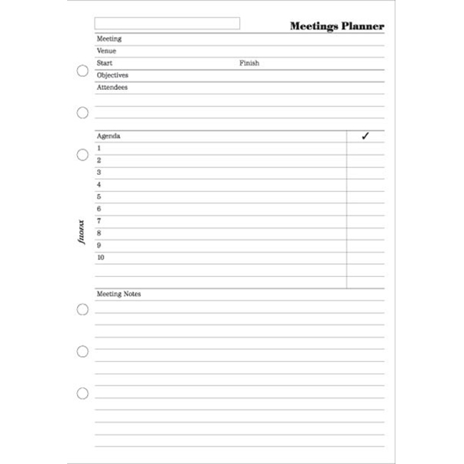 - С място за име и тема на срещата, начало и край, целите, присъстващите, дневният ред и бележки от срещата, като изписването е на английски език: