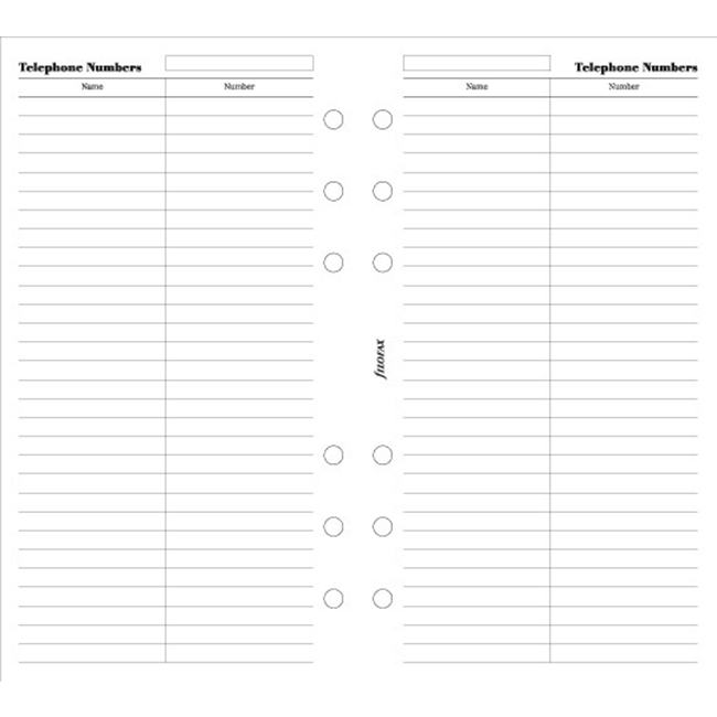 Пълнител за органайзер Filofax, Personal: Име и телефонен номер