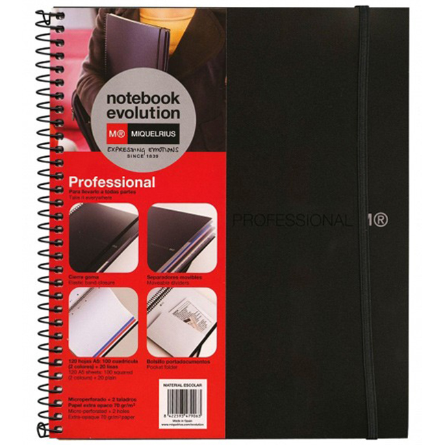 - Тетрадка Miquelrius Professional във формат A5 с еластична придържаща лента.