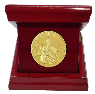 Медалът е с цялостна позлата 24К. На лицето на медала е изобразен пресъздаден образ на Свети Димитър. На гърба - сцена от Благовещение. Медалът е в дървена кутия с различни възможности за поставяне.