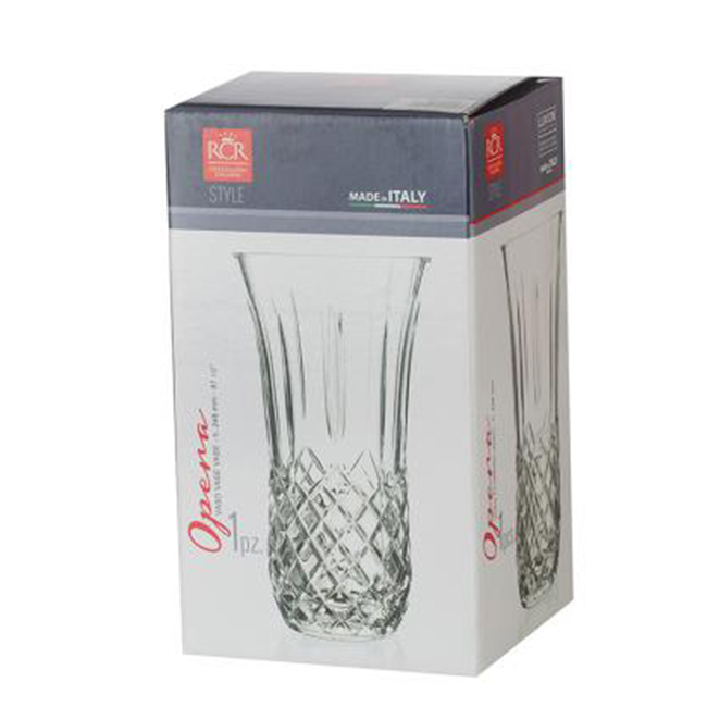 - Стилна ваза, произведена от италианската фирма RCR Crystal. Изящният дизайн и нестандартна форма носят финес
