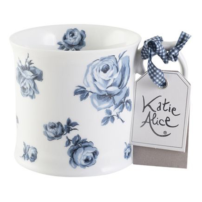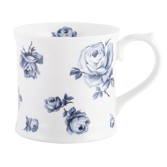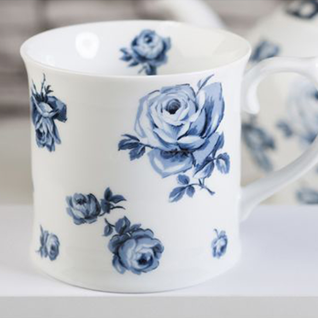 • Чаша с флорален дизайн от сини рози на чист порцеланов фон, вдъхновен от Рембранд.