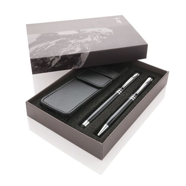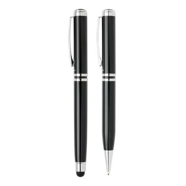 • Комплект химикалка и ролер с класически дизайн в черно и сребро.