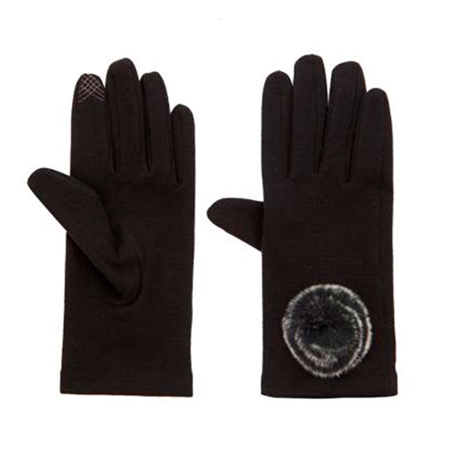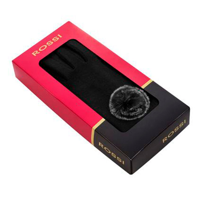 Дамски черни ръкавици със сиво пухче ROSSI