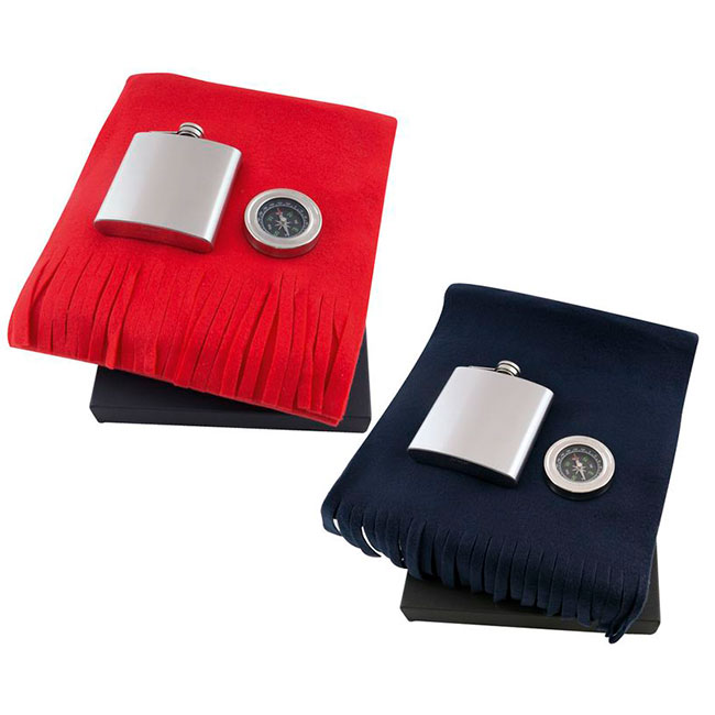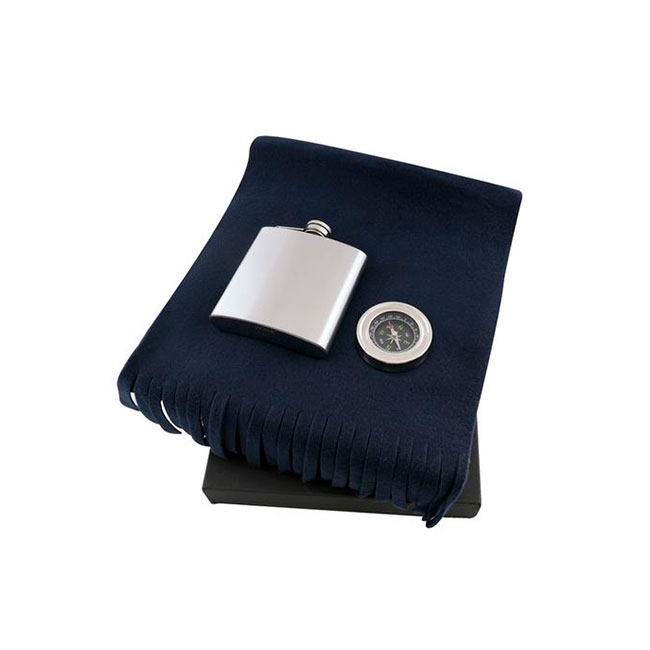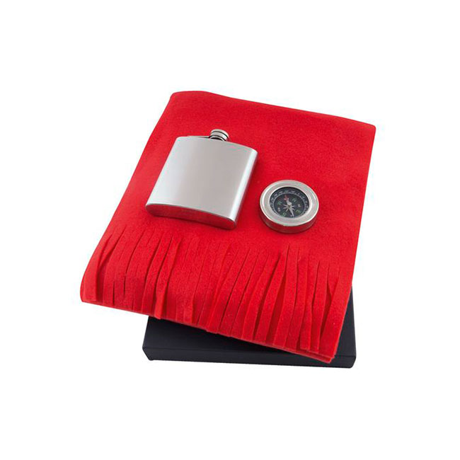 • метална бутилка за алкохол и компас.